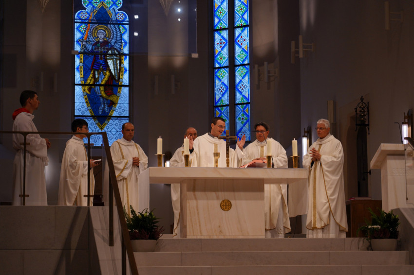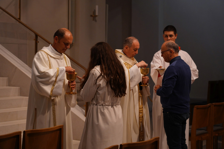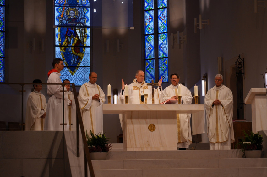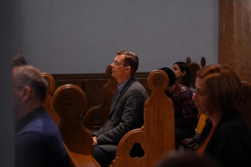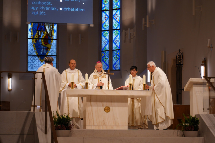 A tavalyi győri látogatás után idén Veszprémbe vezetett a pázmányos közösség útja, reggel a város szívében található Szent Mihály-főszékesegyház elől a résztvevők együtt vonultak be az Udvardy György érsek által celebrált szentmisére.