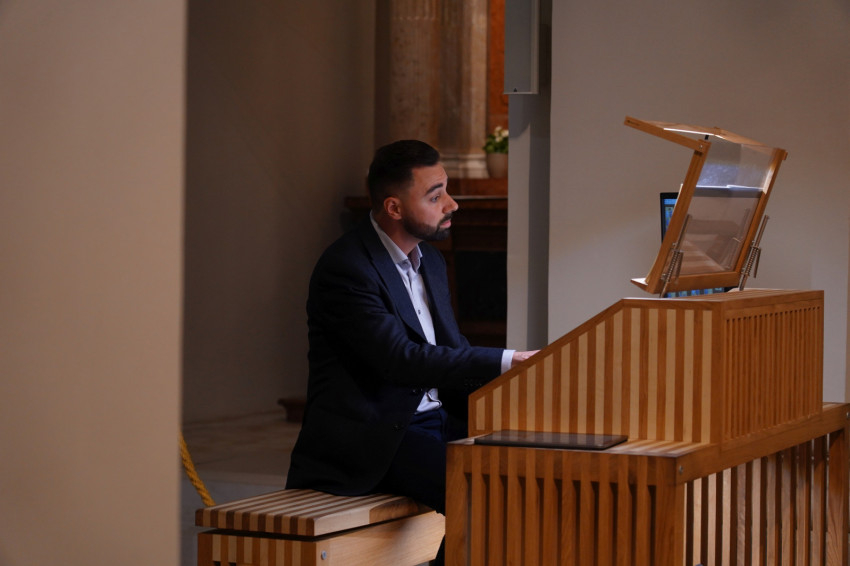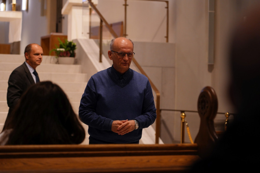Ezt követően a zarándokok zenés áhítaton vehettek részt Dankos Attila orgonaművész, a főszékesegyház zeneigazgatója előadását hallgatva. Udvardy György bemutatta a székesegyházat, kitérve a templom évszázados történetére és nemrégiben lezajlott felújítására is.