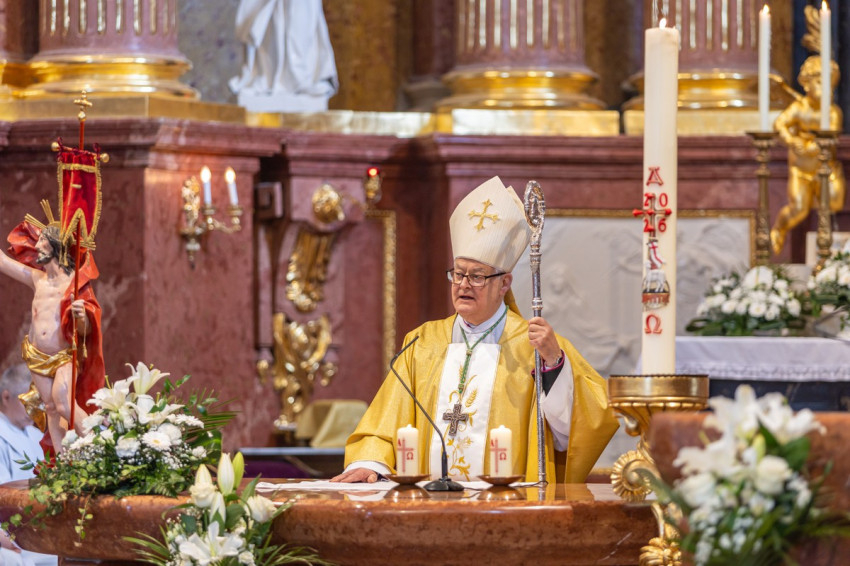 A főpásztor köszöntőjében a feltámadt Krisztus örömére irányította a figyelmet: húsvét nem csupán egy ünnep a sok közül, hanem a keresztény hit alapja és forrása. Arra hívta a jelenlévőket, hogy tiszta szívvel, bűnbánattal és megújult lélekkel ünnepeljék az Úr szent titkait.