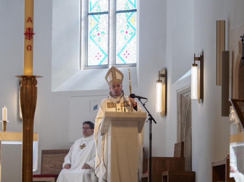 Április 5-én, húsvétvasárnap, Krisztus feltámadásának ünnepén Veres András megyéspüspök szentmisét mutatott be a győri Nagyboldogasszony-székesegyházban.
