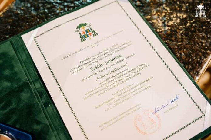 Február 13-án a főesperesekből és aulistákból álló bizottság úgy döntött, hogy idén az esperesek által javasoltak közül az érmihályfalvi Stéfán Julianna kapja az ezüst érdemérmet. Méltatását plébánosa, Bogdán István érmelléki esperes olvasta fel, az igazoló oklevél szövegét pedig Vakon Zsolt püspöki titkár, irodaigazgató.