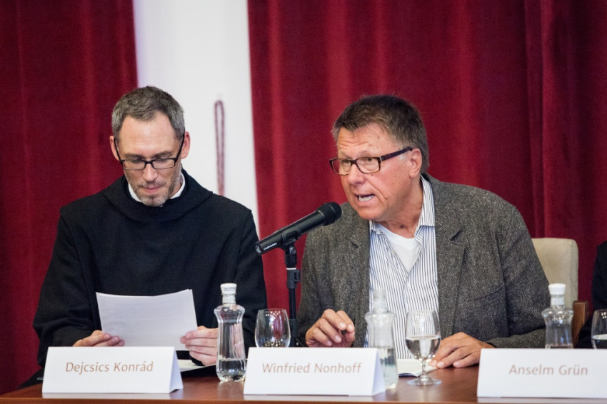 Háromfajta emberrel szokott találkozni – kezdte hozzászólását Anselm Grün, a münsterschwarzachi bencés apátság szerzetese –, közülük az első csoportba a spirituális értelemben vett keresők tartoznak, akik vagy kiléptek az Egyházból, vagy bizonyos távolságra helyezkednek el tőle. Általában a hitvallás idegen számukra, jóllehet a dogmatika nem lezárt mondatok teljessége, hanem művészet, amely Isten titkát az ember számára nyitva hagyja. Feléjük úgy jó közelíteni, ha bemutatjuk, az Egyház tanítása miként segíti az életüket. A második csoport a nem hívők köre, akikben ugyanakkor nagy vágy van a titok, a transzcendencia iránt. Anselm atya kiindulópontja, hogy hisz ezekben az emberekben, a bennük élő vágyban a korai egyházatyák szellemében, akik szerint a lélek természeténél fogva keresztény vonásokat hordoz. Őket nem moralizálva, hanem önmagában hatni képes nyelven lehet jól megszólítani, ahogy Lukács is teszi evangéliumában: abból indul ki, hogy kicsoda az ember, és nem abból, hogy mit kell tennie. A harmadik fajta ember, akivel Németország legismertebb lelki írója találkozni szokott, az, aki hisz, de hitének útja során újra meg újra kétségek merülnek fel benne. A bencés szerzetes úgy látja, legtöbbször a természettudományos képzettség kerül konfliktusba az emberek istenképével, amely sokszor még a gyermekkorukban alakult ki. Nekik azt javasolja, próbálják ki a hit útját, hogy működik-e. Anselm Grün tapasztalata, hogy az Istent elutasítók a túlságosan megszilárdult istenképet utasítják el, a keleti vallásokban található személytelen istennel rokonszenvezők a konkrét vonásokkal rendelkező keresztény Istent nem tudják elfogadni. Márpedig Isten egyszerre személyes és személy feletti; titok, amely felfoghatatlan; energia, amely áthat mindent; de a titok mögött ott a Te, aki megszólít engem, és akit én is megszólíthatok.