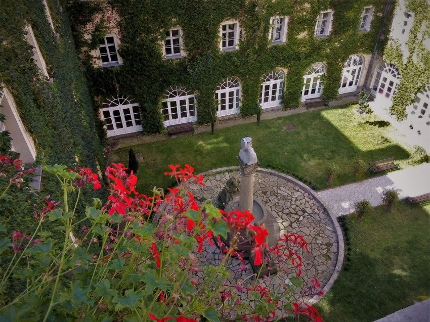 1960-ban az Egyetemi templomnak még nem álltak a tornyai. A kertre néző cellasor lakói még négy éven át reggeltől estig élvezhették a kertben dolgozó kőfaragók koncertjét.