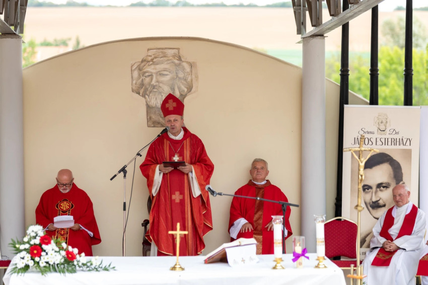 A mi rézkígyónk a megfeszített Krisztus, ahogyan az evangéliumban hallottuk. Rá kell szegeznünk tekintetünket, amikor reménytelenek vagyunk, szenvedünk és küzdelemmel hordozzuk keresztjeinket. De akkor is, amikor jól vagyunk! Egész életünket reménnyel kell Krisztusra vonatkoztatnunk. És akkor nincs mitől félnünk, és hiszem, hogy Isten olyan belső erőt ad nekünk, mint Esterházy Jánosnak, aki csodálatos példaképe a türelemnek, az állhatatosságnak és a kitartásnak” – hangzott el a szentbeszédben.