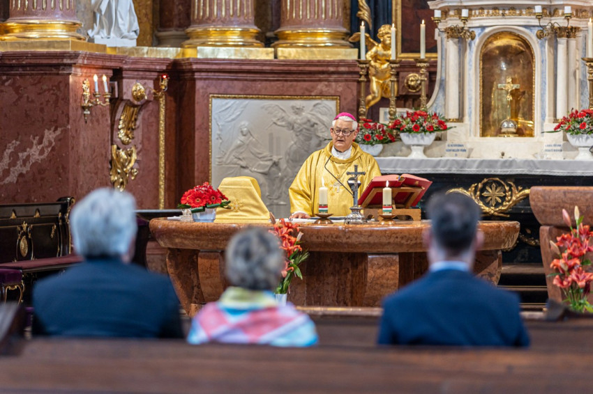 „Tegyetek meg mindent, amit tőlem hallottatok” – idézte Jézus parancsát a főpásztor a szentbeszédben, hozzáfűzve, hogy ennek teljesítése nemcsak a törvény betartását jelenti, hanem mindazt, ami együtt jár az emberi természettel. Hozzátartozik a becsület, a helytállás, a szeretet, amellyel a felebarátunk felé vagy a hazánk felé fordulunk.