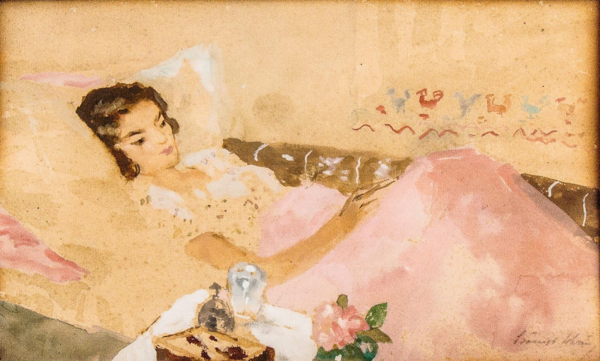 Nézem a képet, melyet egykor római lakása szalonjában tartott, jobbra a bejárat mellett. Három-négy évesen festette meg az apja (Szőnyi István festő – a szerk.), aki „nagyon kérlelte, hogy maradjon nyugodtan, és közben mesélt neki”.
