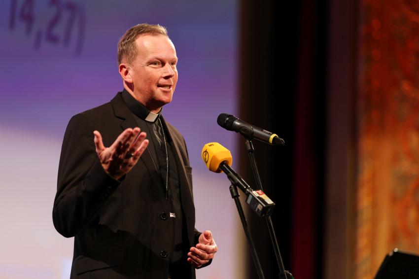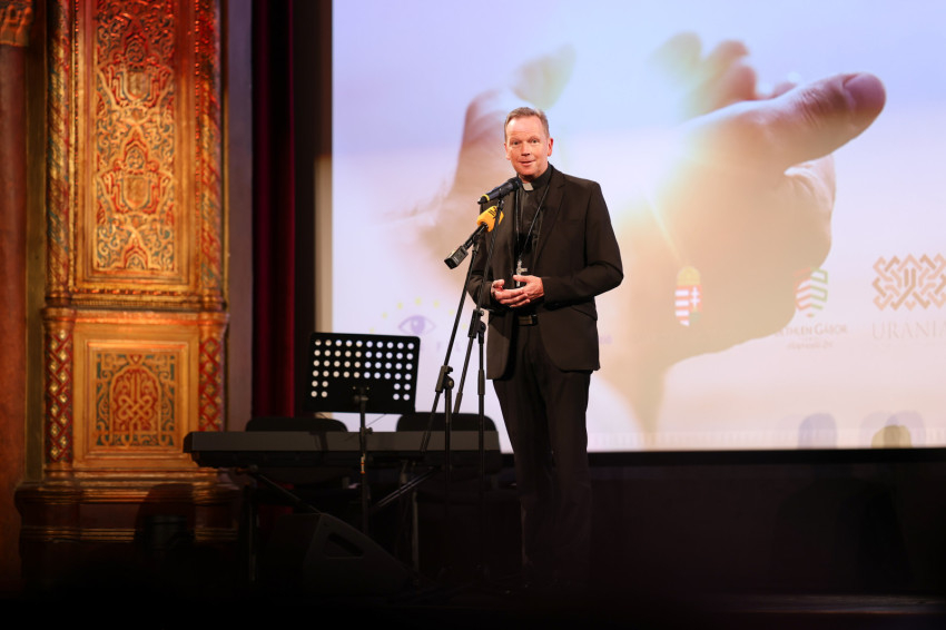 Fábry Kornél esztergom-budapesti segédpüspök ünnepi beszédében idézte a rendezvény mottóját – „Békességet hagyok rátok!” – és kifejtette: három kapcsolaton múlik, hogy van-e béke a világunkban, vagy nincs. Az első a saját magunkkal való kapcsolat: békességben vagyunk-e önmagunkkal? Jaj annak, akit én úgy szeretek, mint magamat! – idézett egy tizenhét éves lányt a püspök, elismerve: nem is olyan könnyű magunkat szeretni, de az önszeretet helyes módja az alázat, ez pedig a valósággal való harmónia. Tisztában vagyok az erényeimmel, gyengeségeimmel, és így szeretem azt az embert, akinek Isten megalkotott, és persze egy életen át törekszem önmagam jobbításán. Meg kell találnom azt a szerepet, amelyre Isten kiválasztott, és azt mindvégig játszani.