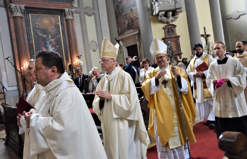 Az egyházzenei szolgálatot Dézsi Bernadett és Nick Andrea közreműködésével a Váci Székesegyházi Kórusiskola tanárai és a katedrális Szent Cecília Kórusának énekesei végezték Varga László karnagy művészeti vezetésével.