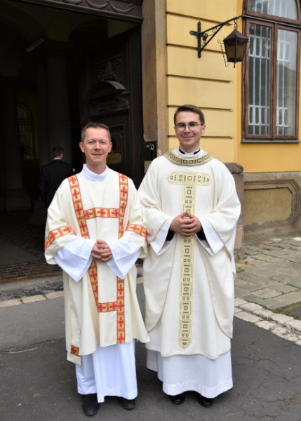 A diakónusszentelés után Hugyecz Balázst szentelte áldozópappá a megyéspüspök. A beöltözését követően a püspök mindkét kezét megkente krizmával, majd a paptestvérek békecsókkal köszöntötték őt. Az új diakónus pedig diakónustársai békecsókját fogadta.
