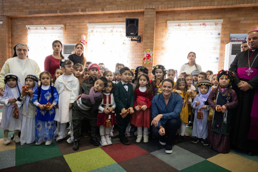 Gyerekek a tell-aszkufi óvodában, Novák Katalin látogatásakor