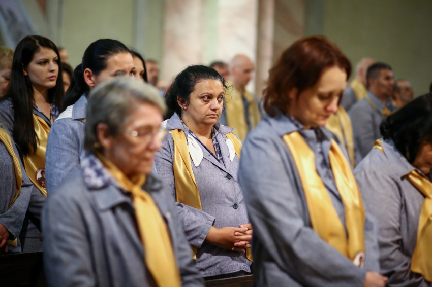 A bizonytalan időjárás miatt a szabadtérre tervezett lelki program a templom falai közé szorult, de az előadások végére egészen derűs idő volt már, így a börtönbe való visszatérés előtt a rabok még egy kicsit élvezhették viszonylagos szabadságukat: felfedezték a kegyhely különböző tereit, vizet vehettek a szentkútból.