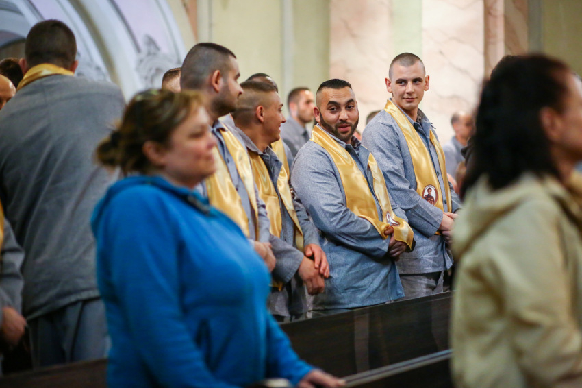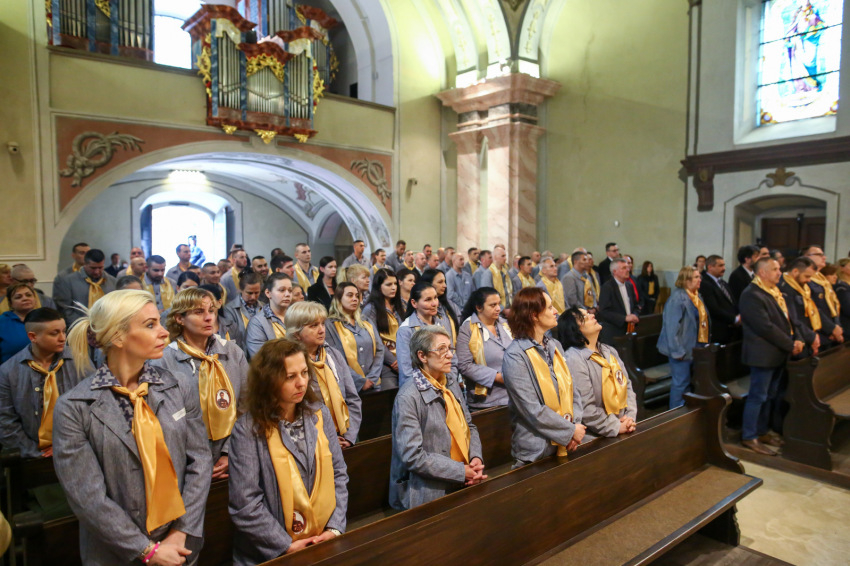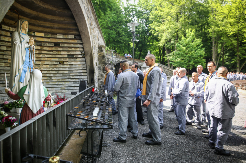 Borongós, bánatos idő volt ezen a májusi szerda délelőttön, mintha együtt búslakodott volna a természet azzal a hatvannyolc fogvatartottal, akik az ország tizenhat fegyintézetéből érkeztek lelki felfrissülésre a ferences kegyhelyre. Miközben a nyitó szentmisére várakoztunk, a Sopronkőhidán szolgáló börtönlelkész kereste meg az elítélteket, hogy az ő saját kéréseik, imáik hangozhassanak el a szertartáson. A két éven belül szabaduló, alacsony vagy közepes biztonsági kockázatba sorolt, együttműködő, szabálykövető fogvatartottakhoz és kísérőikhez egy lengyel delegáció is csatlakozott (így az evangéliumot két nyelven olvasták fel).