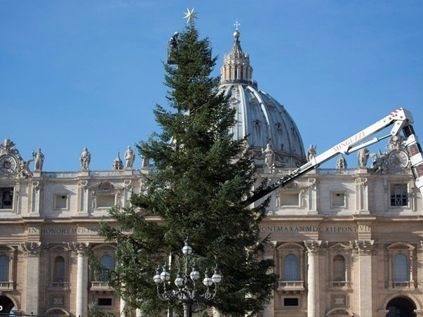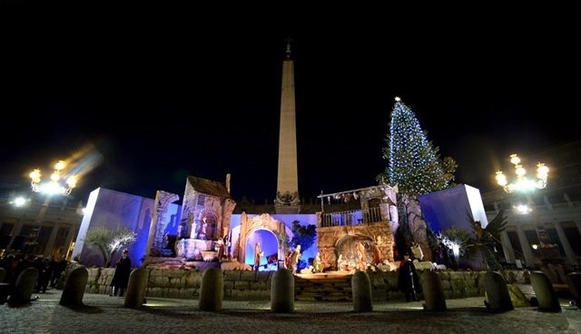 Beszédében a Szentatya kiemelte: a betlehemi jászol és a karácsonyfa a fény, a remény és a szeretet jelképei. Nagyon kedvesek a keresztények családok számára. E két szimbólum a megtestesülés misztériumáról beszél nekünk – Isten egyszülött Fiáról, Aki emberré lett, hogy üdvözítsen minket. Arról a fényről beszél, amelyet Jézus hozott el születésével a világnak.