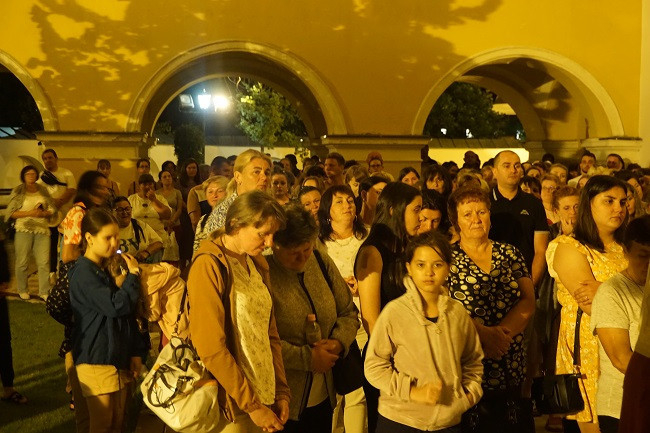 Miközben a kegytemplom előtti tér árnyékos részei megteltek a Kárpátaljáról busszal érkező zarándokokkal, Pindzsu István atya tartott elmélkedést, amit Ferenc pápa a nagyszülők és idősek világnapjára írt üzenetének felolvasásával zárt.