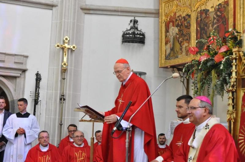 Másnap, szeptember 8-án, vasárnap a magyar prímás Štrbák Ambróz jászóvári apát kérésére magyar-latin nyelvű szentmisét mutatott be Kassán, a premontrei templomban, közel ahhoz a helyhez, ahol hajdan a három szent vértanúhalált halt. A szentmisén a bíborossal együtt misézett Bernard Bober, valamint a jezsuita rend magyar, szlovák, lengyel és horvát provinciájának elöljárói.