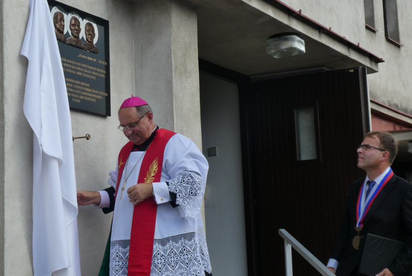 A két főpásztor a három szent kassai vértanúnak a kutatások során nyert, az emléktáblára rögzített ábrázolatának mását kapta emlékül. Erdő Péter bíboros, a Kassai Főegyházmegye egyetlen magyar nyelvű egyházi iskolájától, a Szepsi Boldog Salkaházi Sára Egyházi Iskolaközponttól a három szent kassai vértanú egyedi ikonját kapta hálából mindazért, amit az iskola létrehozásáért és új épületeinek felépítéséért csendben tett és tesz.