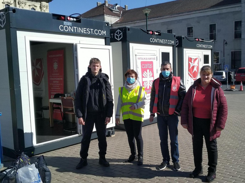 Emellett a két szervezet bekapcsolódott a győri önkormányzat által a Zrínyi utcai kórház területén biztosított ideiglenes menekültszálláson tartózkodók ellátásába is. A Magyar Máltai Szeretetszolgálat hideg reggelit és vacsorát biztosít, március 22-ig ezen felül meleg ebédet is nyújtott. A Győri Egyházmegyei Karitász célzott adományokat biztosít (matracot, ágyneműt és plédet, gyógyszereket, kötszereket, bébi tápszert, edényeket, gyermekruhákat, tisztítószereket).
