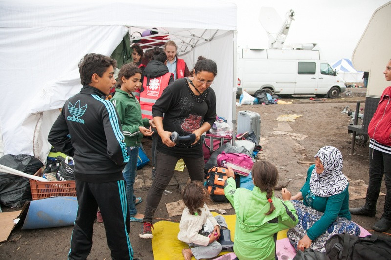 Szeptember 7-én a Karitász munkatársai takarókat, hálózsákot, ivóvizet vittek Röszkére a határt átlépő menekült családoknak. Ezen a napon több mint kétezer ember aludt sátrakban és a szabad ég alatt a határ mellett. Segélyszervezetünk másnaptól 24 órás orvosi és szociális ellátást biztosított egy héten keresztül a rászorulóknak, főként családoknak, gyermekeknek. Écsy Gábor, a Katolikus Karitász országos igazgatója az első naptól személyesen is jelen volt a helyszínen, ott irányítva a munkát. A bázison Zagyva Richárd igazgatóhelyettes és Vadász Bálint munkatárs koordinálta a feladatokat és az önkénteseket.
