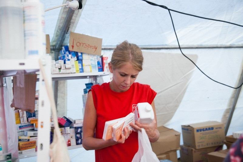 Az első napokban segélyszervezetünk egyedüliként nyújtott szervezett orvosi és szociális ellátást a buszokra váró embereknek. A szükséges eszközökkel szakszerűen felszerelt orvosi sátrat dr. Debreceni Katalin vezette, aki nagy gyakorlattal és nem lankadó energiával végezte egész héten át az embert próbáló munkát.