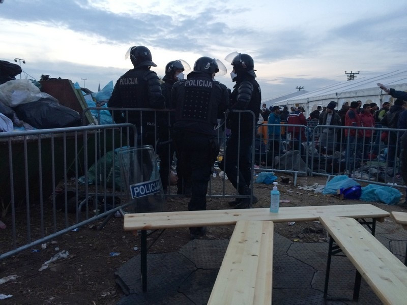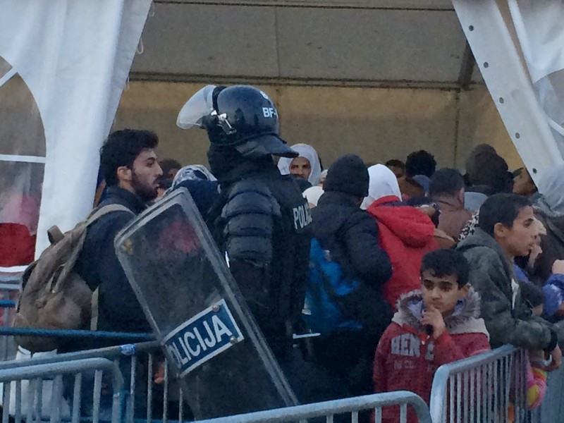 A szlovén rendőrök határozott, de békés fellépésének köszönhetően nyugalom van a táborban, és szervezetten folyik a menekültek ellátása és szállítása.
