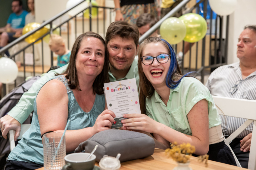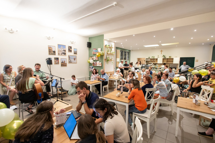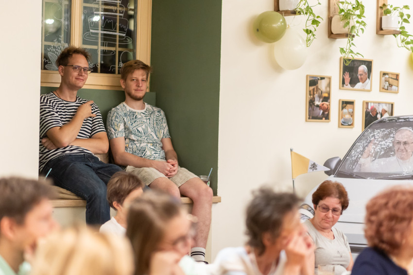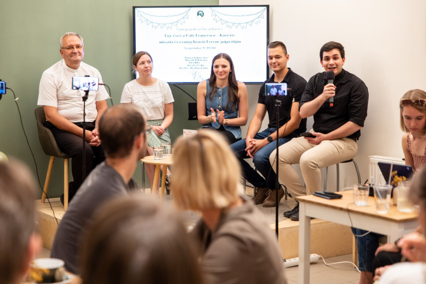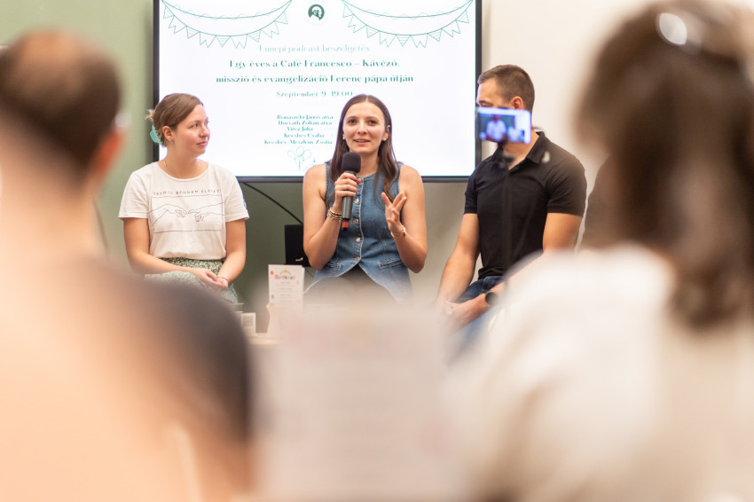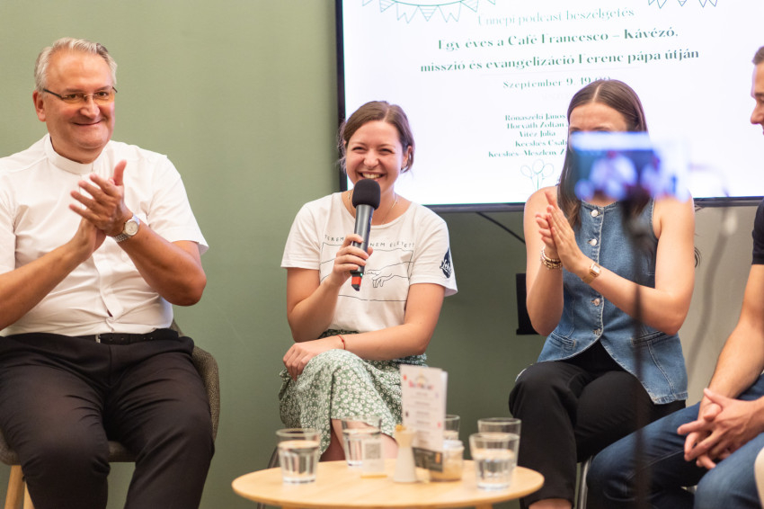 A népszerű keresztény kávézó esti programja ezúttal születésnapi podcastbeszélgetés volt, amelyen a Café Francesco alapítói, Rónaszéki János, a Budapest-Újlipótvárosi Árpád-házi Szent Margit Plébánia káplánja és Horváth Zoltán, a budapest-terézvárosi Avilai Nagy Szent Teréz-templom esperes-plébánosa; Vitéz Júlia üzletvezető (aki öt hónappal ezelőtt Lőw Juliannától vette át a vezetést), Kecskés Csaba, a nonprofit kávézót létrehozó-üzemeltető Franciscus Alapítvány kurátora és Kecskés-Meszleny Zsófia, a kávézó és a helyszíni programok médiamenedzsere, online felelőse vett részt.