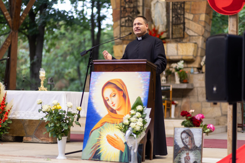 Kovács Zoltán megvilágította: a Szűzanya ma már a mennyből, megdicsőült emberi mivoltában segít nekünk, hogy Istenhez közelebb vigyen bennünket. Anyai szívét a mennyország boldogsága nem teszi érzéketlenné, sőt ott is „van szeme” a „mai kánai menyegzők” problémáira, hogy anyaként közbenjárjon értünk; „van szíve”, hogy megtámogassa imáinkat a sajátjával. XVI. Benedek pápa mondta egyszer: „A mennyországnak szíve van.”
