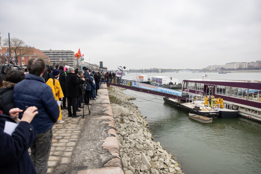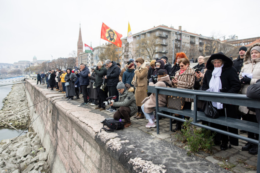 A Batthyány térnél, csaknem szemben az Országházzal a Duna egyik keskeny mólóján sorakozott fel a papság és az asszisztencia.