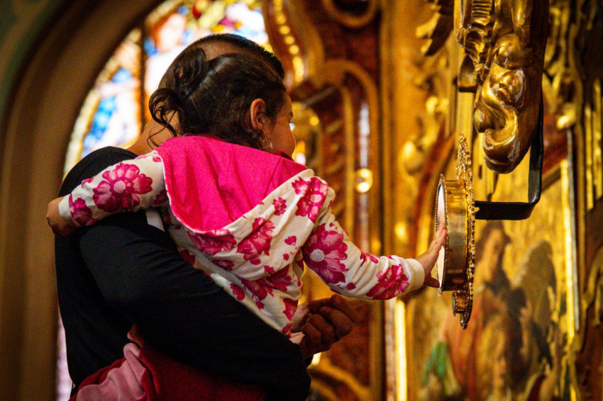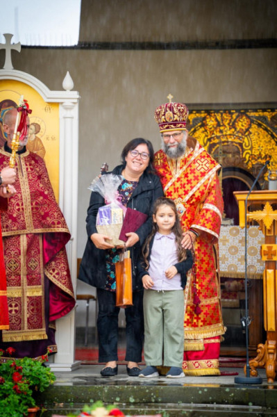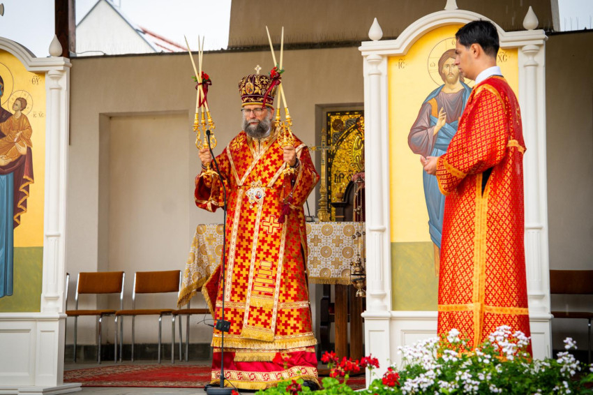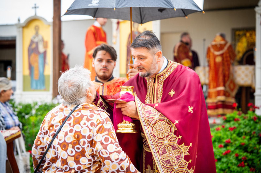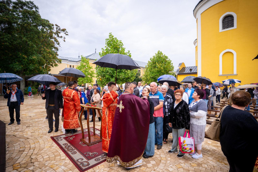 A Szent Liturgia kezdete előtt eső érkezett, de a közösségek összefogással segítettek egymásnak: padokat vittek a fedett részekre, hogy minél többen részt vehessenek a szertartáson. A papok és az asszisztencia az esőben vonultak a tábori oltárhoz, majd a nyolc paptestvér a fedett oltár körül foglalta el helyét. A kántori szolgálatot a Hodászi Görögkatolikus Cigány Egyházközség látta el Lakatos Sándor vezetésével, két szeminarista és egy papnövendék is segítette őket. Az imádságok nagy része cigány nyelven hangzott el.