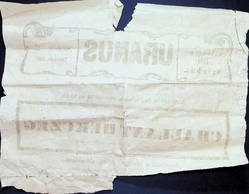 Igazán különleges az iratra mintegy védőrétegként elhelyezett, kissé szakadt papír is, amely az Uranus mozgóképszínház műsoráról tudósít minket.