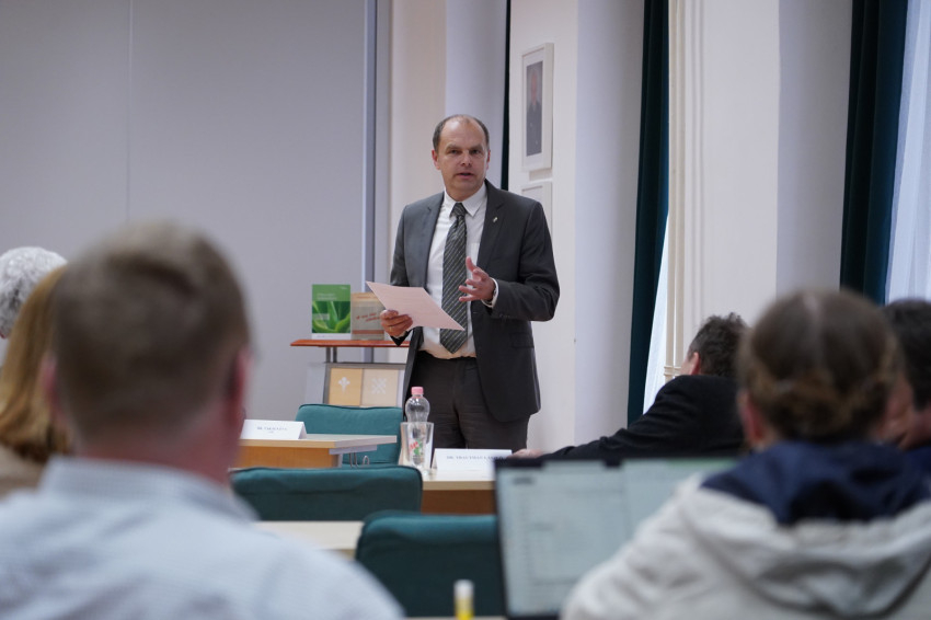 Kuminetz Géza rektor Prohászka Lajos A mai élet erkölcse című, nemrégiben újra megjelent munkáját ismertette, úgy is mint a kötet bevezetőjének szerzője. Prohászka ebben a munkájában az erkölcsi tudat alakulását és egyre erőteljesebb torzulását mutatja be, amely torzulás „az elmúlt évtizedekben tovább erősödött”.