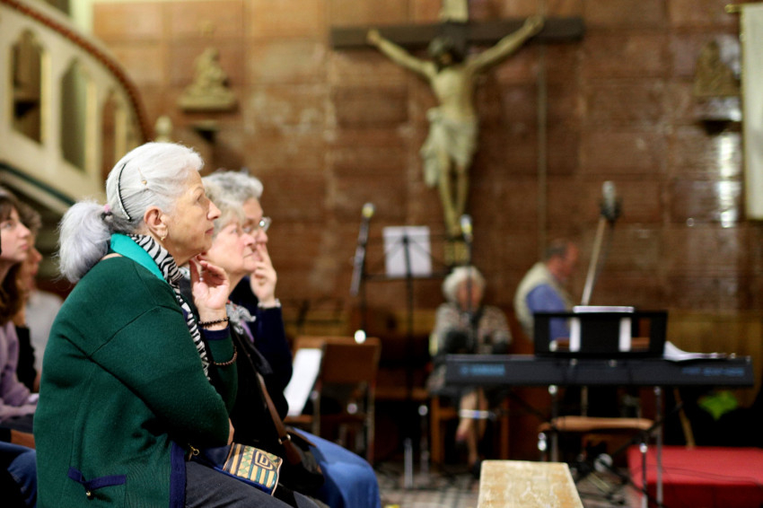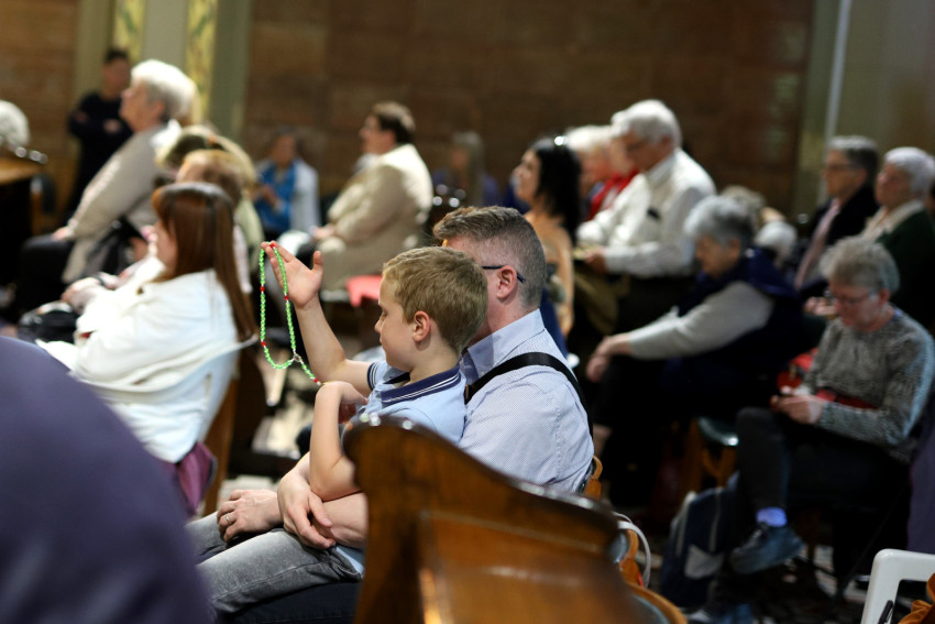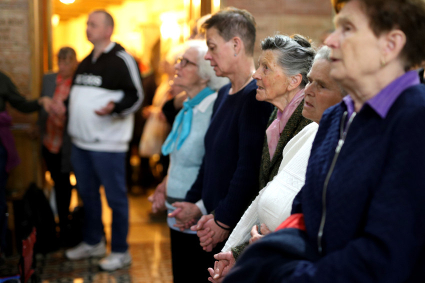 Ezt követően a hívek rózsafüzért imádkoztak, Kemenes Gábor atyának, a Szeretetláng Mozgalom papi vezetőjének az elmélkedéseivel. A bevezető részben a Miatyánkot és a három Üdvözlégyet Erzsébet asszony imádkozta elő egy 35 éve készült hangfelvétel segítségével.