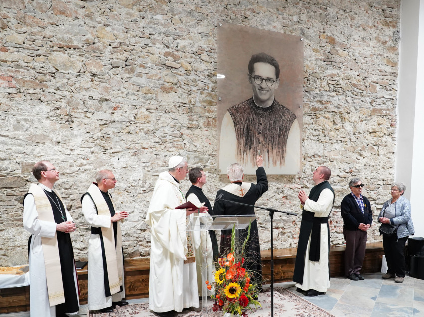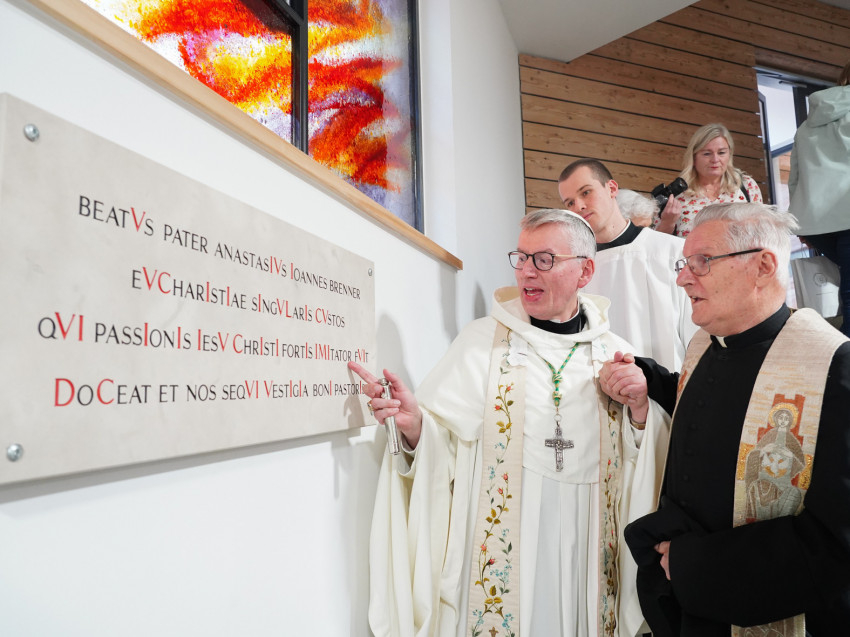 Vasárnap délelőtt a heiligenkreuzi ciszterci apátság Szent Kereszt-templomának új oltárképét készítő művész, Clemens M. Fuchs tartott előadást a nagy méretű festmény alkotási folyamatáról. A sokalakos kép jobb oldalán Boldog Brenner János tartja a keresztről levett Jézus Krisztus lábát. A festőművész ismertette a Szent Kereszt-templom további megújulásának terveit is, bemutatta annak makettjét és a készülő falképeket.
