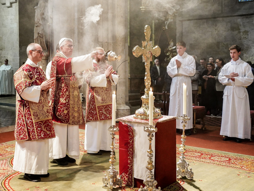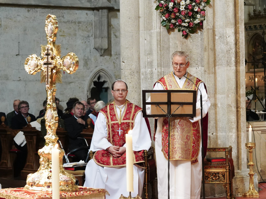 A szentmise végén körmenet indult a Szent Kereszt-ereklyével, melyet Bernát apát vitt baldachin alatt. A relikvia előtt közösen imádkoztak, majd Bérczi Bernát apát angol nyelven mondta el gondolatait a Szent Keresztről.