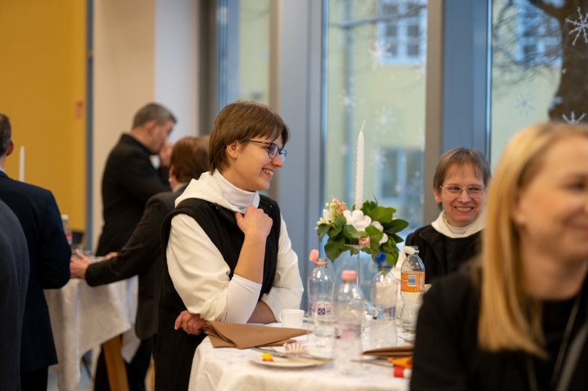 „Minden este imára hívjuk ide a lányokat, és tartok itt osztályaimnak hittanórákat is” – mutat körbe Franciska. Az intézmény múltjára rendkívül büszke tanárnő végigvezet a közösségi teremben felállított kiállításon, mely a nővérek áldozatos oktató-nevelő munkáját dokumentálja. Programokban gazdag iskolaévükben fontos helyet foglal el a hitélet, a női identitásban, önismeretben támogató nevelés.
