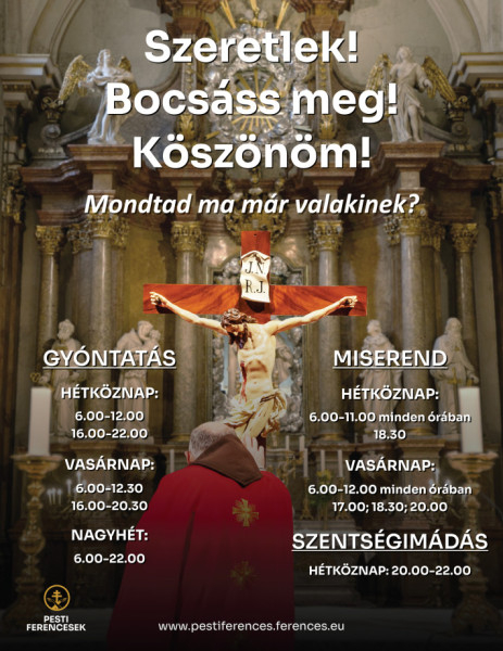 Nagyböjt a bűnbánattartás ideje, amikor egyházunk azokat is arra kéri, hogy végezzék el szentgyónásukat, akik ezt máskor nem teszik meg. Nekünk, ferenceseknek pedig, akik Budapest szívében élünk – ilyenkor különösképpen – az a kötelességünk, hogy a kiengesztelődés szolgáiként ezt minél többek számára elérhetővé tegyük.