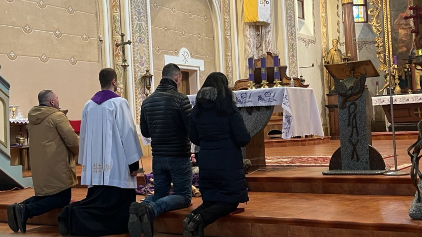 A házaspárok az Isteni Irgalmasság rózsafüzérének közös elimádkozásával az Úrhoz fordultak, Isten kegyelméből kérték a békét Ukrajnában.