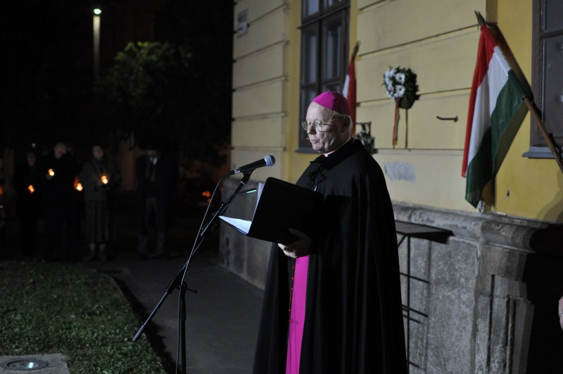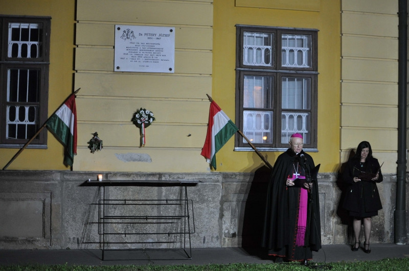 Varga Lajos beszédében felelevenítette Pétery József püspöki kinevezésének, szolgálatának időszakát, amelyet a kommunista államrend egyházellenes magatartása határozott meg.