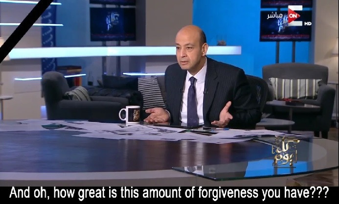 Az ismert műsorvezető megindult az asszony szavain: „Ti, koptok olyan erősek vagytok, mint az acél” – mondta, miután néhány másodpercig nem találta a szavakat. Majd hozzátette: „Milyen hatalmas a megbocsátásotok! Ha ellenségeitek hallanák, el sem hinnék. Ha az én apámat gyilkolták volna meg, és nem tudnék így beszélni. Ezekben az emberekben nagy megbocsátás él, ez a hitük, vallásos meggyőződésük. Ezek az emberek más anyagból készültek” – fogalmazott Amr Adíb. Hősnek, mártírnak és példaképnek nevezte a meggyilkolt férfit, és felhívta a figyelmet arra, hogy az országot az ilyen emberek türelme és kitartása viszi előre.