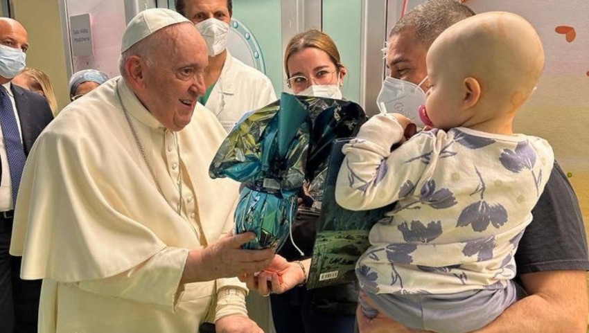 Fotó és videó: Vatican News (a nyitóképen Ferenc pápa csokoládétojást nyújt át egy beteg kisfiúnak)