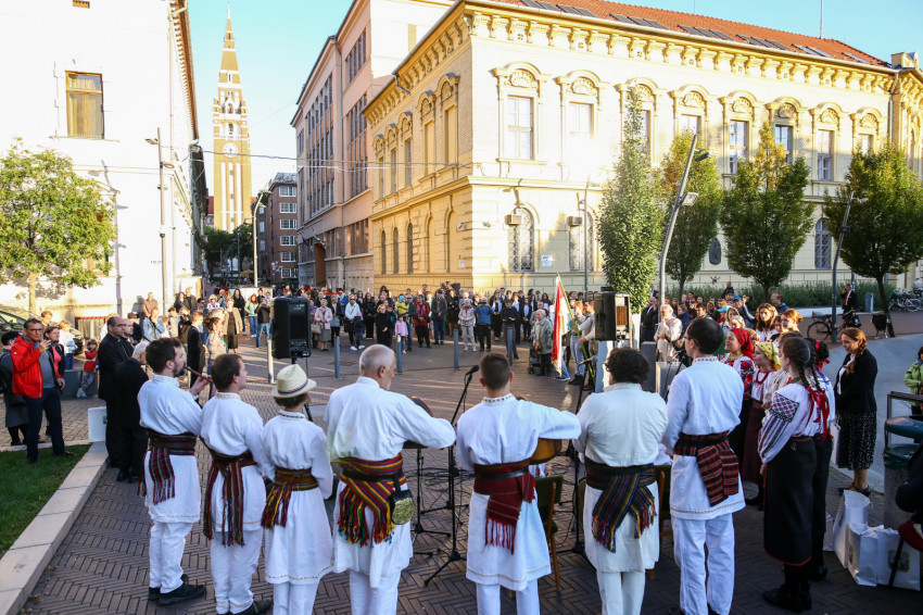 A Dugonics András Piarista Gimnázium népzenész növendékei Mária országa címen adtak elő ezeréves kincseket Moldvából és Gyimesből, moldvai népviseletben.