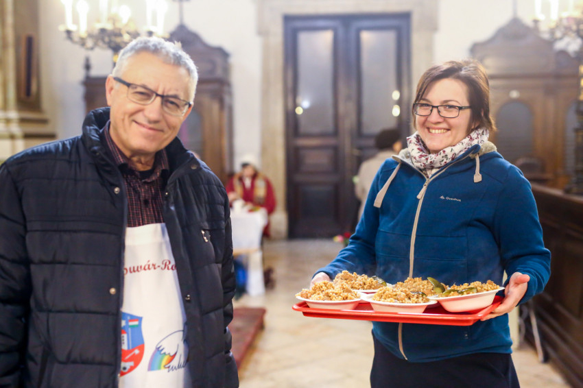 Az ízletes ebédet a Sant’Egidio közösség régi barátai, segítői, a Kapuvári ÍzvadÁszok főzték, akik a közösség tagjait és szegény barátait is már név szerint ismerik, nemcsak Budapesten, hanem Pécsen és Rómában is, ahol vízkeresztkor főznek immár évek óta a közösség szegények számára fenntartott étkezdéjében.
