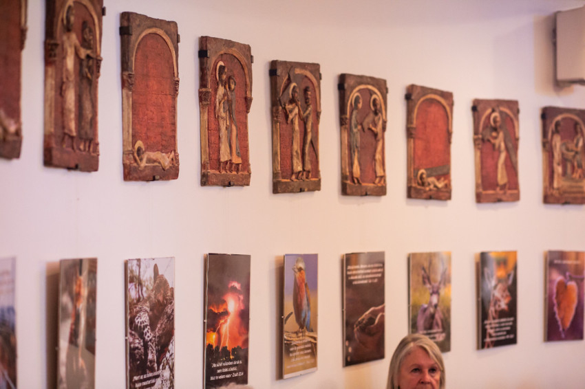 A beltéri kerámiastációkat – amelyek megrendelésre készültek egy dunántúli faluba, de végül adományként kerültek ide – Magyar Márta keramikus iparművész készítette Budapesten.
