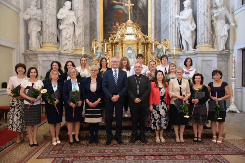 A korábban pedagógusként dolgozó püspök a szakma szépségéről is beszélt, megköszönve mind kollégáinak, mind a szülőknek és a diákoknak az idei tanévbe fektetett munkát. A szentmise után az egyházmegyében az elmúlt tanévben kiemelkedő munkát végzett pedagógusok vehették át elismeréseiket. Idén tizenhárom pedagógus részesült Te Deum díjban, három pedagógus Te Deum életműdíjban, négyen a Szent Gellért-díj ezüst fokozatát vehették át, egy pedagógus pedig a Szent Gellért-díj arany fokozatát.
