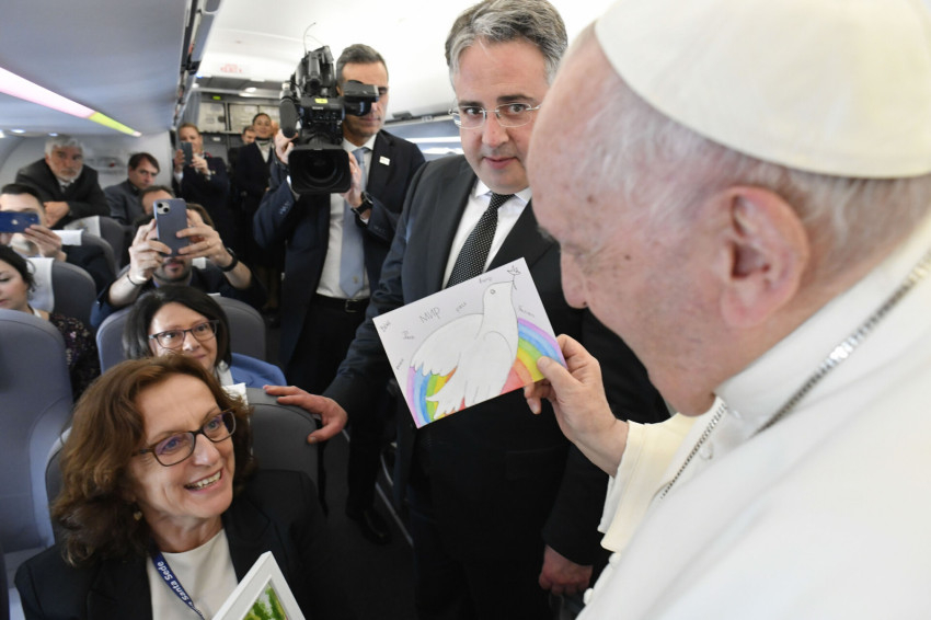 – Nagyon izgultam, vajon most is végigmegy-e a repülőn az újságírók között, hiszen nehézségei vannak a járással, de szerencsére nagyon jó erőben volt Ferenc pápa. Mosolyogva indult el, és egyenként köszöntött mindenkit, néhány emberrel hosszabban is elbeszélgetett. Nagyon szép volt látni, ahogyan figyel arra, akivel éppen beszélget, mindenkinek a szemébe néz.