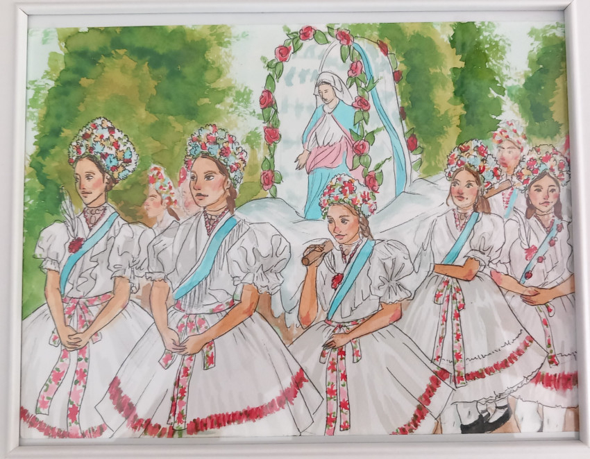 A 17 éves Julcsi egy körmenetet festett meg, ahol magyar népviseletbe öltözött lányok egy Mária-szobrot visznek. Ő Mostarban tanul, onnan küldte el postán; izgultunk, hogy időben megérkezzen. A 16 éves Anna a Sant’Egidio közösség emblémájában szereplő galambot és szivárványt festette meg. Levelet is írt a kép hátuljára olaszul a pápának, de azt nem árulhatom el, mit írt benne. Az ő képét nézve Ferenc pápa megjegyezte: