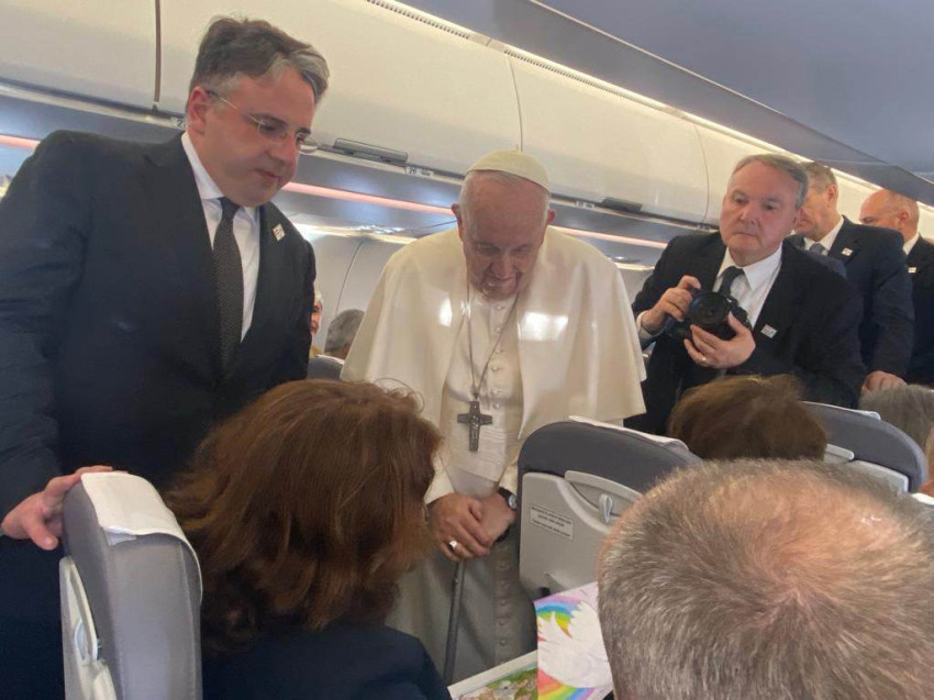 – Volt alkalmad néhány szót váltani a pápával a repülőn? Átadhattál ajándékot?