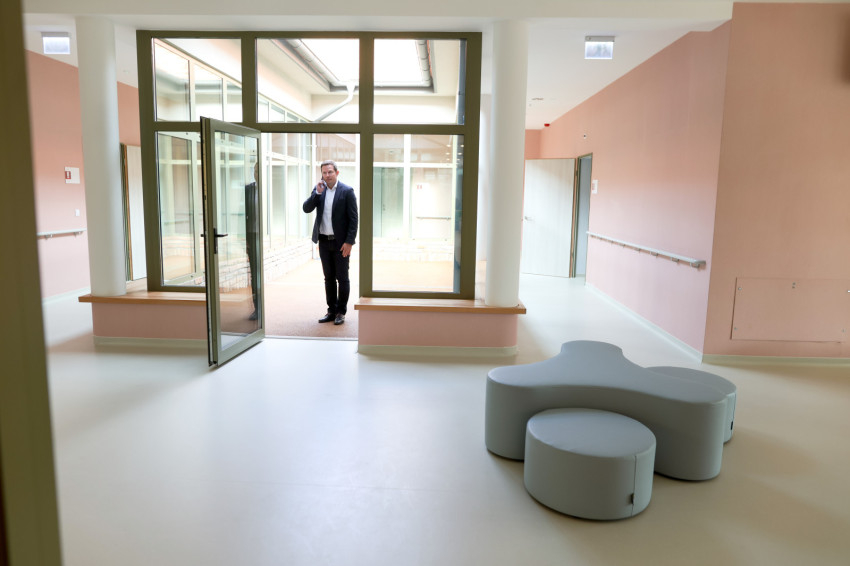 Az egyik házban a magas viselkedési kockázatú emberek fognak lakni, akik ha valami nem komfortos számukra, agresszívvá tudnak válni, bántják a társaikat vagy önmagukat. Elsőként egy belső átriumba lépünk be. Míg korábban egy szobában és a folyosón telt az emberek élete, itt keresték a lehetőségét, hogy szabad eget lássanak, érezzék a szelet, a hóesést, átéljenek egy hajnalt, alkonyatot úgy, hogy mind ők, mind társaik biztonságban vannak – mutatott rá Kokas László.