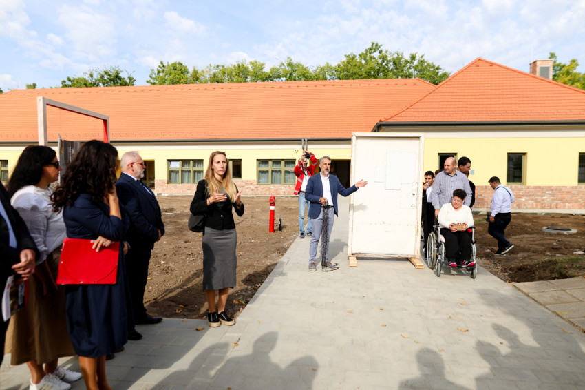Az udvaron át jutunk az új épülethez. Néhány fényképpel próbálták illusztrálni a múltat. A két új épületben már várnak ránk a beköltözők, hamarosan felkerülnek neveik a lakások tábláira. Az ajtók még csukva vannak, kezdődik az átadás, ami után a vendégek – köztük Tuzson Bence igazságügyi miniszter, Fülöp Attila gondoskodáspolitikáért felelős államtitkár, Tarnai Richárd, a Pest megyei kormányhivatal vezetője – be is tekinthetnek a lakóterekbe.