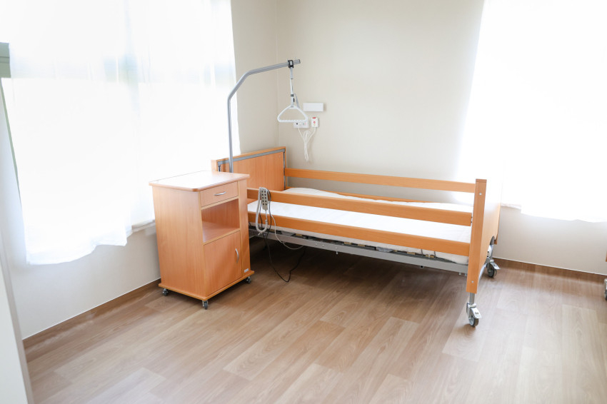 Egy- és kétágyas szobáik ajtaját arcfelismerő nyitja, biztosítva a személyes biztonságot – magyarázza Giflo Péter. A bútorzat kifejezetten ide készült, masszív az ágy, rögzítettek a bútorok, bírják akár a rugdosást, rohamokat. Mindenkinek van szekrénye, ezek polcait úgy alakították ki, hogy ne lehessen rá felmászni. A tévé magasra került, plexit is terveznek tenni elé. Az ágy és szekrény színe összetartozik, így a szín is köti őket a lakóhoz, akik érezhetik, ez a sajátjuk.