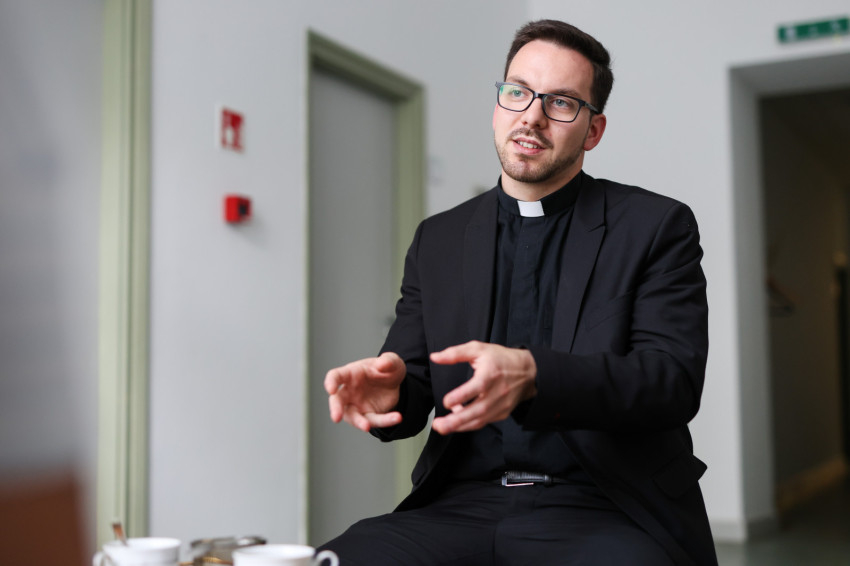 Pietro Trevisan az egri Redemptoris Mater Egyházmegyei Missziós Szeminárium növendéke. Az olasz származású fiatalember már tizenkét éve a Neokatekumenális Út szemináriumában tanul. A Porto San Giorgióban rendezett sorsoláson Londont húzta, így ott kezdte meg tanulmányait. 2019-ben Budapestre küldték missziós gyakorlatra. Egy olyan közösségbe került, ahol négy család – két magyar és két olasz – élt együtt. Ekkor kezdett magyarul tanulni. Az Egyesült Királyságban közben változtak a körülmények, Pietro nem tudott visszatérni Londonba, ezért Egerben folytatta a szemináriumi tanulmányait. Negyedéves volt, amikor ideérkezett. „Szerettem nagyon Londonban, nyolc évet töltöttem ott, de ha már nem mehettem vissza, örültem, hogy idekerültem, mert a két missziós év nagyon szép volt. Kiléphettem a szeminárium zárt világából, családokkal voltam együtt, láttam a nehézségeiket. A két olasz család mindent otthagyott Olaszországban. Megéreztem, hogy a hit életet irányító valóság. Én egyedülálló vagyok, de gyerekkel mindent elhagyni, az egészen más” – írja le a számára meghatározó élményt.